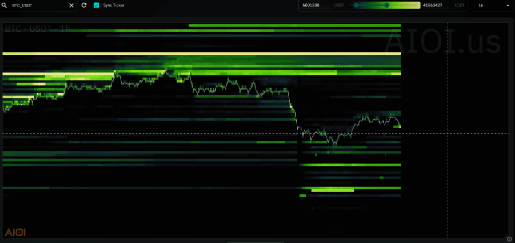 Bên dưới BTC mặc dù có tường mua trông cũng tương đối, nhưng các tường kê rất rải rác. Những tường ở gần thì khá bé, các tường lớn lớn 1 chút thì lại kê tít dưới tận 105K với cả 99K. Bên trên cho đến đỉnh cũ 125K thì các tường limit bán mặc dù đang rất mỏng nhưng BTC cũng không thể đẩy tiếp được do lực bán chiếm áp đảo của lệnh market