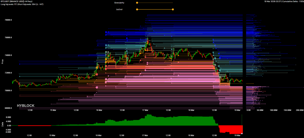 Vùng giá từ 68-70k đã mới xuất hiện thêm tường mua tổng giá trị khoảng $50M. Tại đây cũng đang là 1 vùng hỗ trợ quan trọng ở PTKT. Bên trên cho đến 75k thì vẫn đang khá thoáng tường bán. Khá là ủng hộ BTC sẽ có 1 nhịp hồi tại đây.