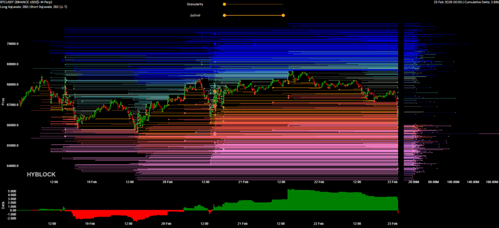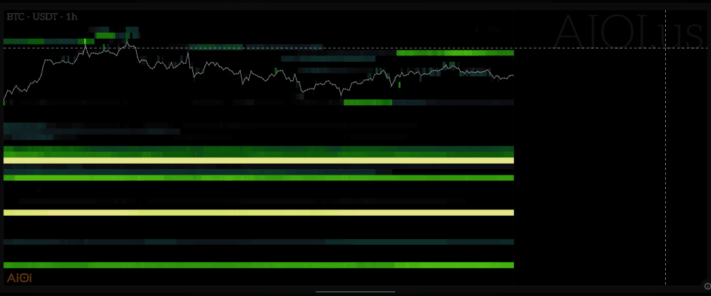 Trong giai đoạn BTC sideway từ đầu tháng đến giờ thì mỗi khi giá tiếp cận lại vùng quanh 70K thì BTC đều xuất hiện những lệnh bán mạnh thể hiện bởi những cụm bong bóng đỏ. Còn lực mua thì không đáng kể, chỉ có lực tham gia mua nhiều ở lần giá tìm về 60K. Cho thấy tạm thời BTC vẫn chưa có động lực để bẻ trở lại xu hướng tăng, ủng hộ việc các nhịp hồi vẫn sẽ là cơ hội để tìm kiếm lệnh Short