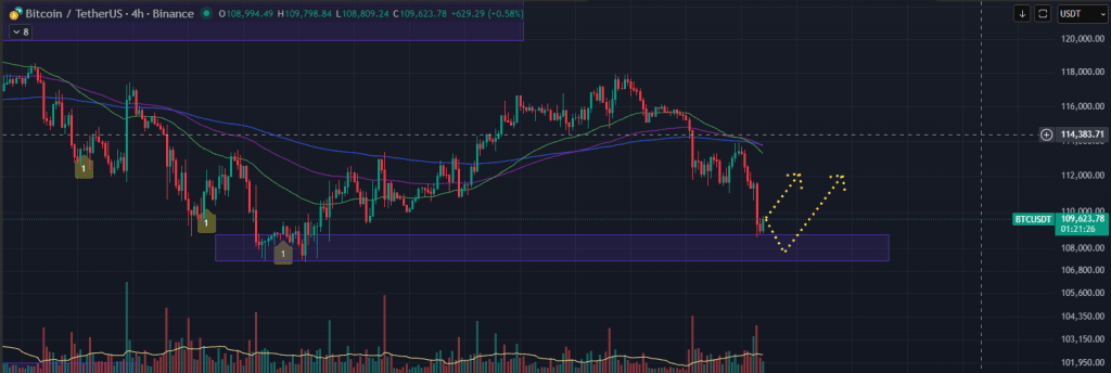 Trong ngắn hạn giá sẽ không thủng qua 107K mất vùng hỗ trợ, và BTC sẽ sớm có nhịp hồi lên lại tầm 112-113K