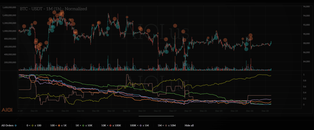 Về tường mua bán thì trước mắt các mốc 90-94k vẫn đang là vùng tập trung tường bán dày nhất. Nếu đẩy qua được mốc này thì khả năng rất cao sẽ tìm lên lại được 100K. Do vùng tường ở 100k cũng đã bị gỡ đi khá nhiều so với trước đây rồi. Bên dưới vẫn đang duy trì tường đỡ tốt, hy vọng không mất 85k thì sẽ rất đẹp cho nhịp tăng luôn cho BTC
