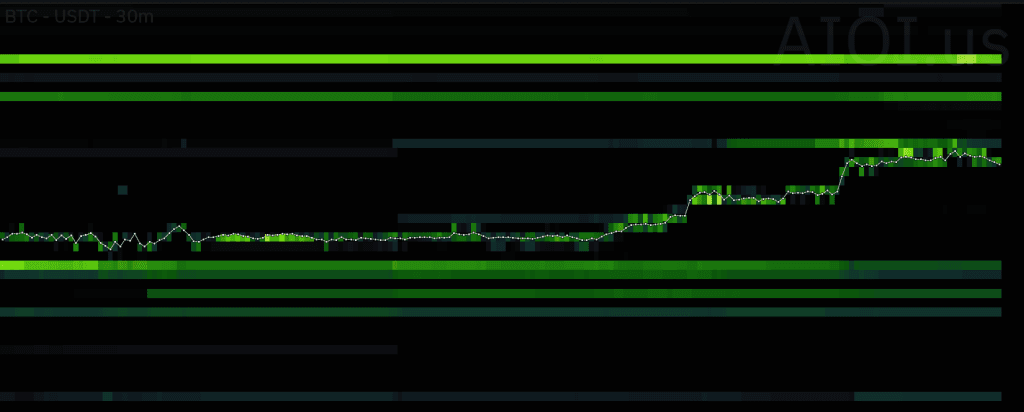 Sau khi đẩy giá lên 114k mặc dù BTC chưa xuất hiện tường mua lớn đỡ thêm bên dưới nhưng tường bán chặn ở 115K đã được gỡ bớt từ $26M về $16M. Dấu hiệu này vẫn khá là tốt để ủng hộ BTC tiếp tục đi lên mốc tường bán lớn tiếp theo ở 118K