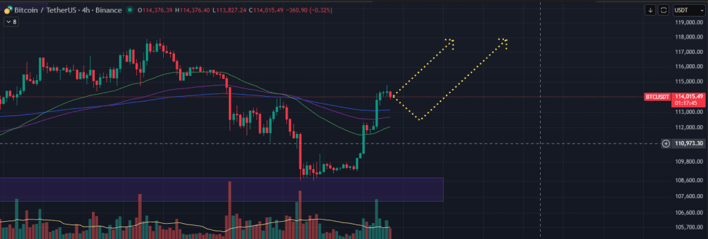 Dữ liệu đều đang khá ủng hộ BTC còn tiếp tục đi lên vùng kháng cự tiếp theo ở 118K. Nhưng trước khi lên có thể có nhịp chỉnh nhẹ về tầm 112-113K