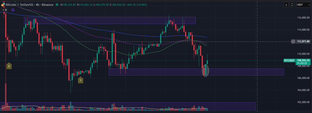 Khi BTC mất 110K thì các tường mua đỡ bên dưới đã có sự gia tăng rõ rệt ở 100-106K. Nhìn chung thì vùng đỡ này khá ổn để BTC không thủng mất 100K. Nhưng nhìn về các khung bé vùng hỗ trợ gần nhất theo PTKT đang là 106-107K thì tường mua đỡ vào khối lượng không được tốt lắm.