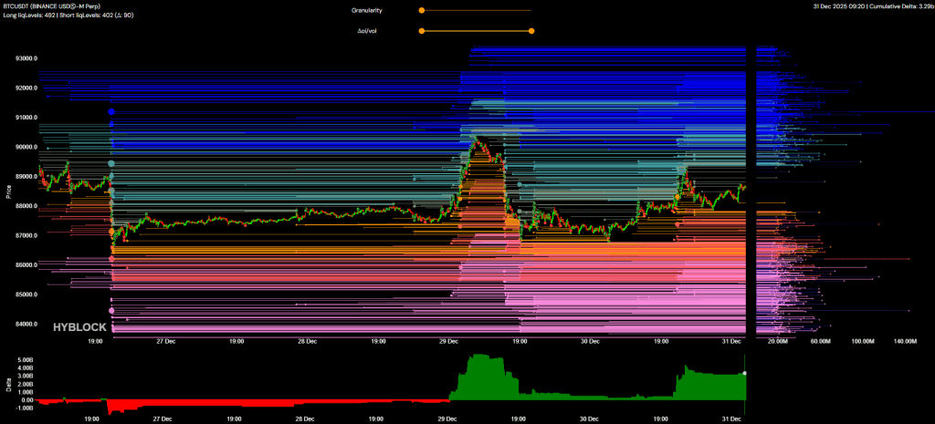 Mốc 90k vẫn đang là mức cản quan trọng mà đã test đi test lại 4-5 lần rồi mà vẫn chưa phá qua được. Hiện thì mới có tường hơn $20M kê vào ở 90k. Ở bên dưới thì cũng mới có thêm tường hơn $20M kê vào ở 87k.